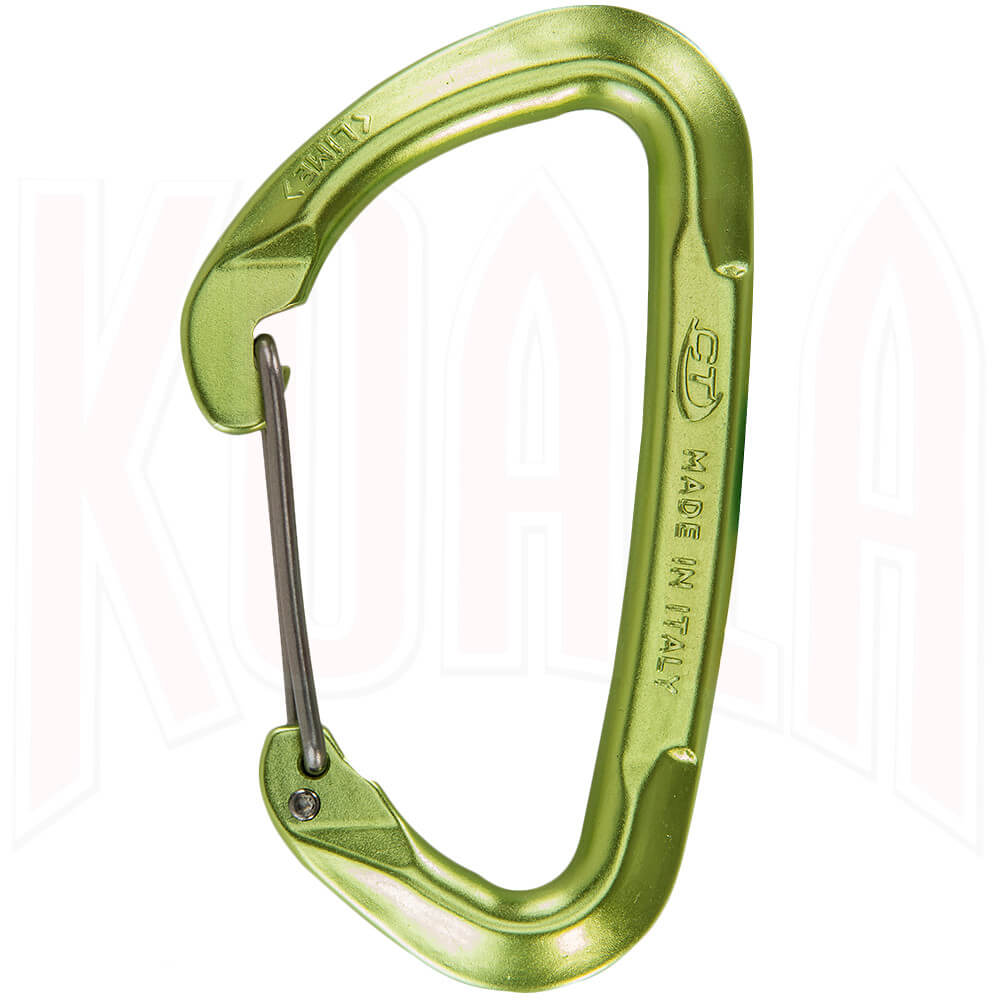Unidad cinta Express LIME MIX para escalada de Climbing Technology equipada con 2 mosquetones (mosquetón de leva recta de cierre catch-free y mosquetón wire) para una mejor diferenciacion a la hora de mosquetonear en chapa o cuerda, unidos por una cinta Dyneema. Cinta expres de excelente calidad y precio.