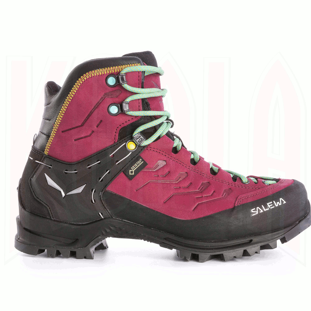 Bota de montaña Salewa para enfoques de alpinismo técnico en periodo estival y actividades Trekking de dificultad. Bota de montaña semirígida RAPACE GTX para mujer, impermeable y transpirable con membrana Goretex® y suela Vibram®. Bota de montaña ligera, cómoda y resistente construcción piel nobuck.